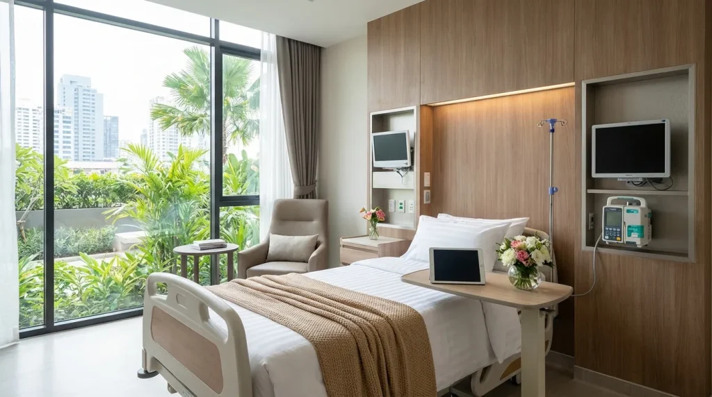 - ห้อง VIP เดี่ยว – ห้องส่วนตัว พร้อมห้องน้ำในตัว ทีวี ตู้เย็น และสิ่งอำนวยความสะดวกครบครัน